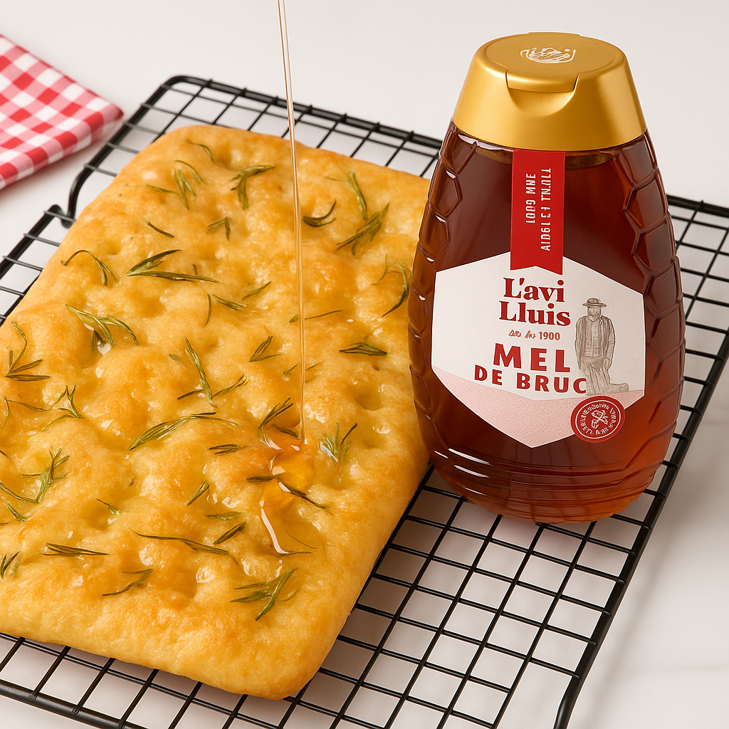 Quan pensem en focaccia, segurament ens ve al cap un pa típic italià, amb oli d’oliva i un punt salat. Però… i si li donem un gir diferent? Avui et proposem una recepta sorprenent: focaccia dolça amb mel de l’Avi Lluís i ametlles torrades. Una combinació que uneix la suavitat d’una massa esponjosa, el toc aromàtic de l’oli, la dolçor natural de la mel i el cruixent irresistible de les ametlles.